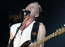 21:30hs., el estadio lleno, comienza el show puntualmente. ¿Con qué me encontraría? La producción es impecable, arrays de parlantes ultra-modernos por todo el estadio, un mangrullo de sonido como pocas veces se ve por estos lares. ¿Tendrán la potencia desde el escenario para mover semejante cantidad de gente o estarán viejos? ¿Sting podrá con el repertorio? En segundos empezaré a tener respuestas. Cinco pantallas al frente y otra atrás en las que se ve mejor que en un plasma, impresionante. La iluminación y la puesta de luces detrás de las pantallas son impecables pero no quitan la atención de lo principal: la música. Message in a Bottle arranca a todo trapo y volumen, la gente estalla, el sonido se sobrepone a toda la gente cantando y gritando, demasiados bajos, Sting 1 – Summers 0, la batería impecable. Primer round ganado por la banda, están enteros y generan lo esperado, ya tienen a la gente en el bolsillo.