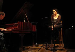 Entonces… estábamos en que eran exactamente las 22:55 hs. del sábado 13 de noviembre de 2010. Amed y una suerte de pseudo scat a capella; Iaies que aporta sutilezas al principio hasta que todo se transforma en un dueto de precisión quirúrgica. El arreglo de la Zamba de Lozano es rayano en la perfección (y porque uno no quiere andar exagerando). Amed da la sensación de poder cantarlo todo. Y todo bien. Iaies protagoniza un pasaje de solo piano para el éxtasis de los que estamos ahí, magnetizados, tensos, inquietos, felices. Fueron quince minutos sublimes en los que pareció que, como escribiera Borges en El milagro secreto, “el universo físico se detuvo”. Antes y después, lo comentado: un concierto con desniveles, siempre atrayente, con una cantante que entiende lo que está cantando y un músico que entiende lo que está tocando.